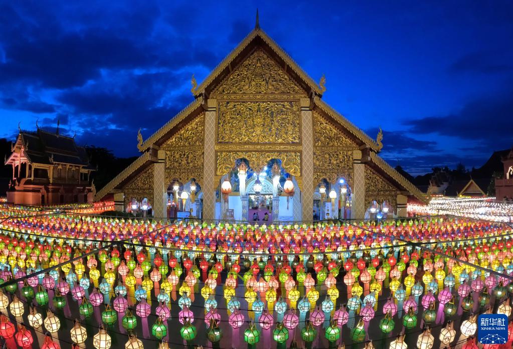 近日,泰国南奔府在哈利奔猜寺举办盛大灯会,吸引游人纷纷前来挂灯留影、祈福许愿。