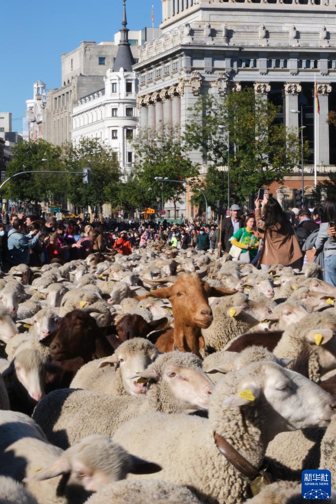 10月24日,羊群走过西班牙马德里市中心。