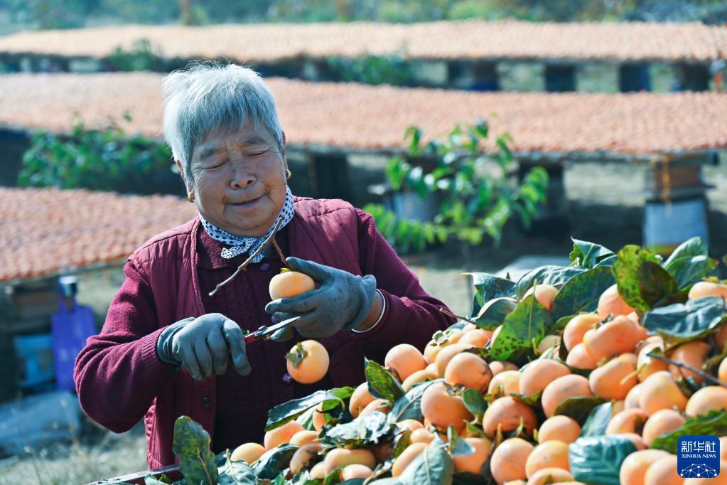 10月30日,万荣县史家埝村农民在加工晾晒柿饼。
