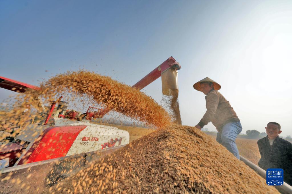 深秋时节,河北省邢台市临城县种植的水稻迎来收获季,当地农民抢抓晴好天气及时收获水稻,确保颗粒归仓。