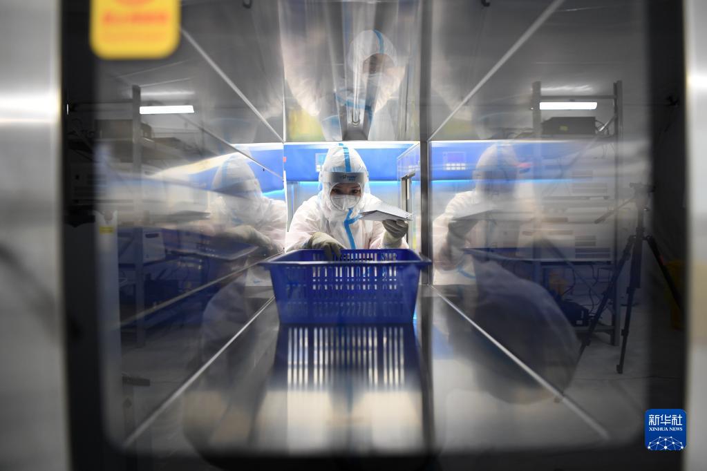 10月24日,“猎鹰号”硬气膜实验室工作人员普臣惠在样本处理区作业。