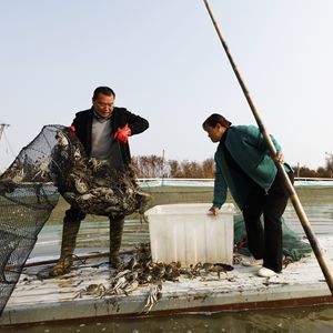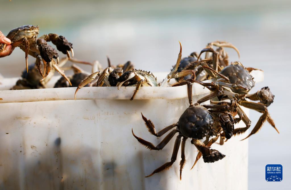深秋时节,江苏省宿迁市泗洪县蟹农养殖的螃蟹逐渐育肥成熟,迎来收获季节。