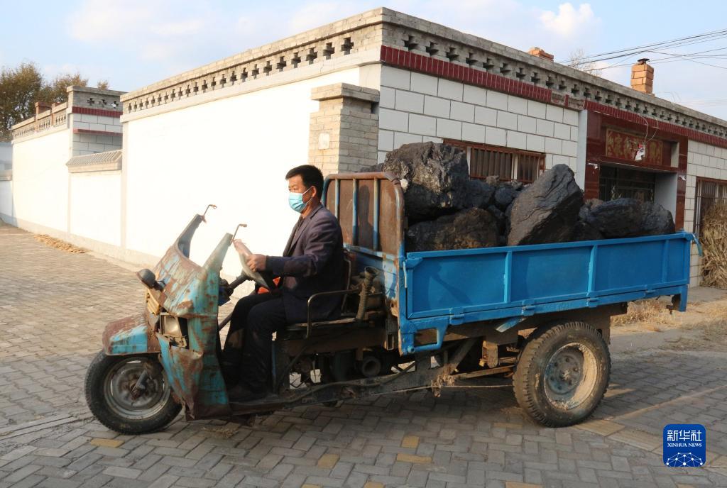 10月28日,内蒙古准格尔旗阿岱沟村村民侯七十六领到政府送来的“暖心煤”。