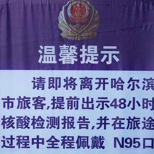 为有效快速阻断疫情传播渠道,哈尔滨市应对新型冠状病毒感染肺炎疫情工作指挥部发布公告,请广大市民群众非必要不离哈,确需离哈的,须持48小时内核酸检测阴性证明、凭健康码绿码通行,并全程做好个人防护。