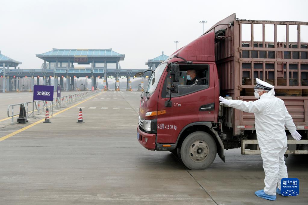 10月31日,在哈尔滨一出城口,交警将未能提供48小时内核酸检测阴性证明的司机劝返。