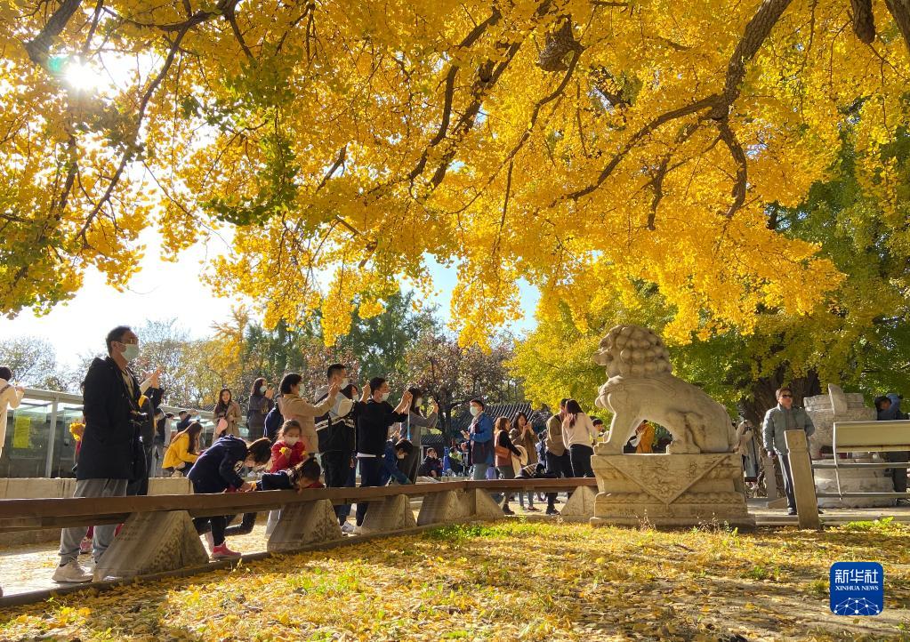 10月31日,人们在北京五塔寺欣赏秋景(手机照片)。