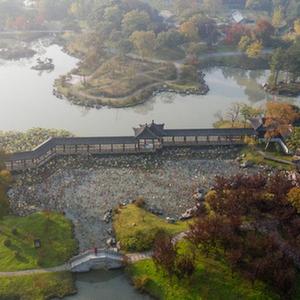 10月31日拍摄的江苏扬州瘦西湖风景区(无人机照片)。