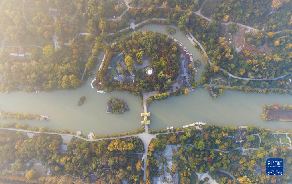 深秋时节,江苏扬州瘦西湖风景区色彩斑斓,尽显秋日迷人景色。