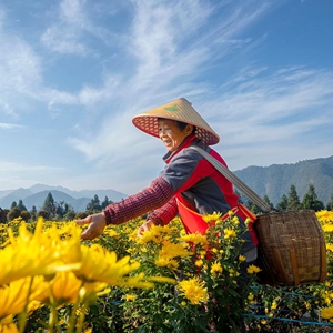 近日,位于浙西山区的浙江省杭州市淳安县大墅镇桃林村种植的金丝皇菊进入采摘期,农民趁晴好天气忙着采摘、分拣、烘烤,制做金丝皇菊花茶。