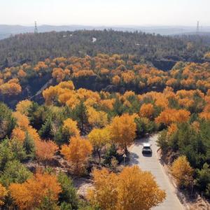 金秋时节,在陕西省神木市栏杆堡镇,一道道山梁层林尽染,引来众多游客驻足观赏。
