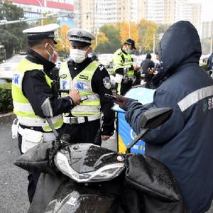 11月1日,交通警察在海淀区中关村大街进行电动自行车车辆信息核查。