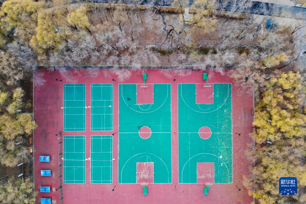 这是11月1日拍摄的哈尔滨平房区平房公园篮球场(无人机照片)。