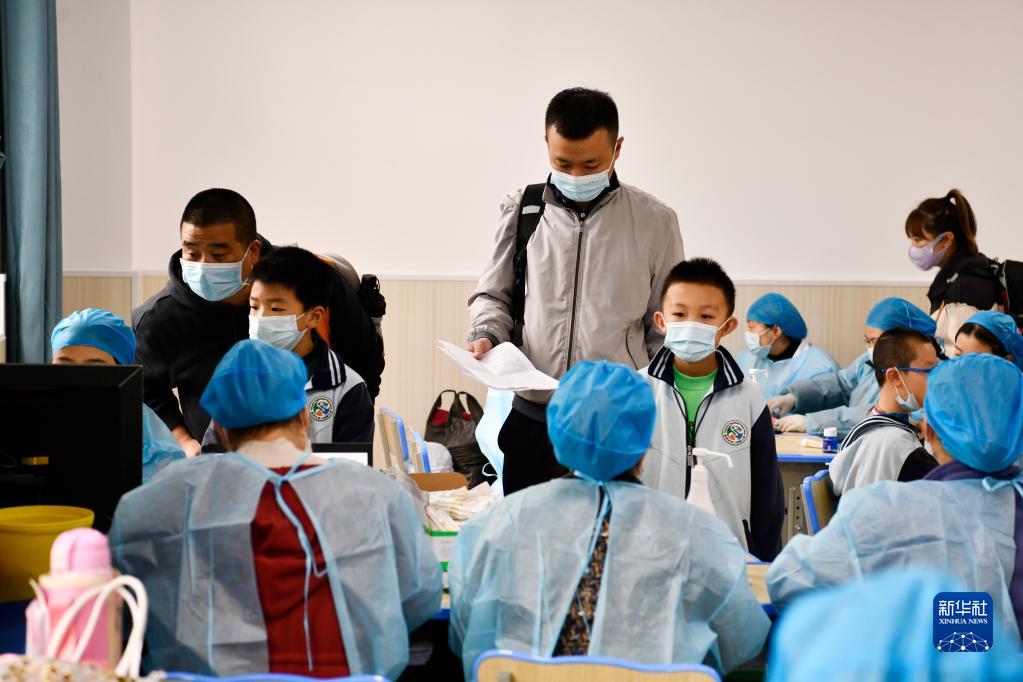 近日,贵州省贵阳市全面启动3至11岁人群新冠疫苗接种工作,医务人员走进校园,为学生接种疫苗。