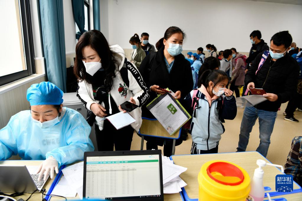 近日,贵州省贵阳市全面启动3至11岁人群新冠疫苗接种工作,医务人员走进校园,为学生接种疫苗。