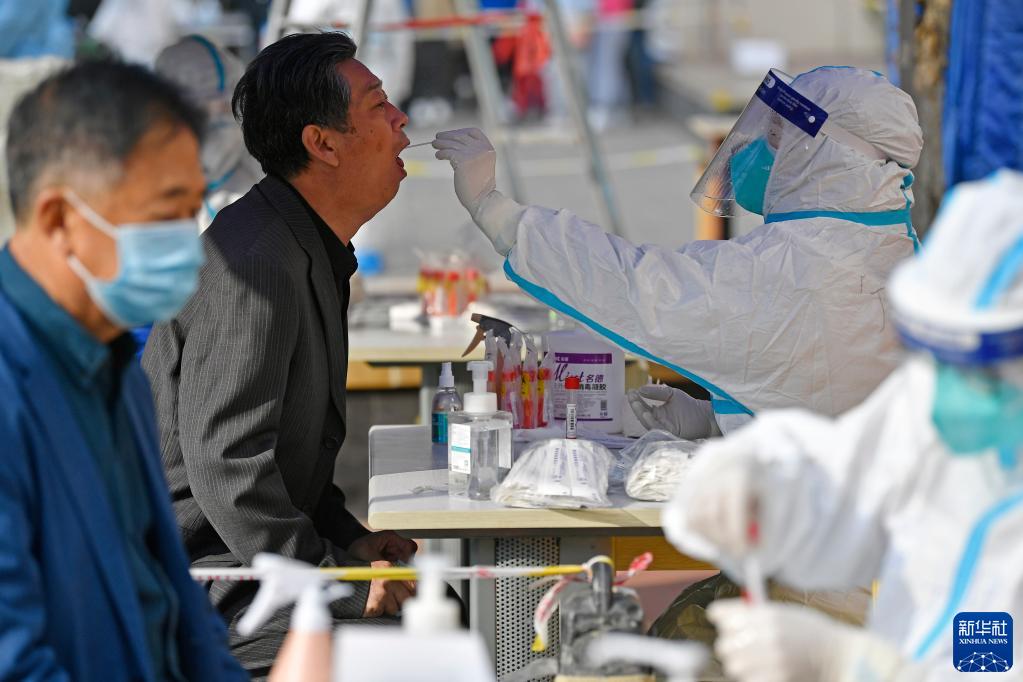 11月2日,市民在宁夏银川市兴庆区丽景街街道泰和社区核酸采样点进行核酸采样。