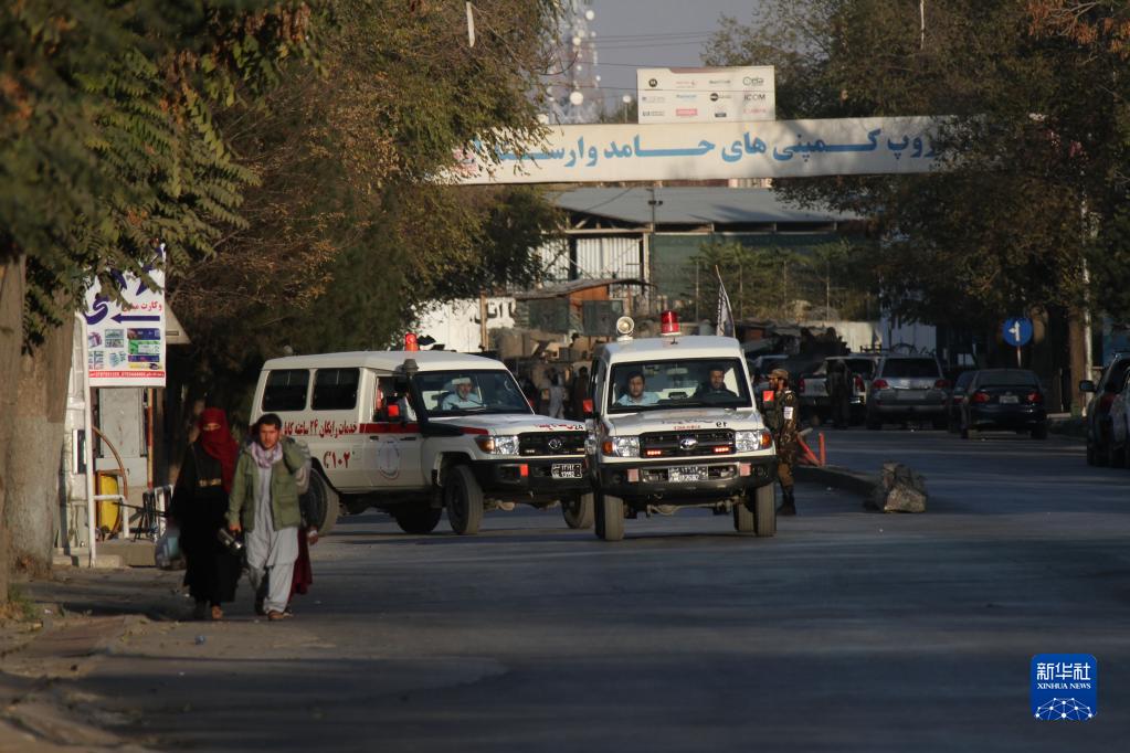 这是11月2日在阿富汗首都喀布尔发生爆炸的地点附近拍摄的救护车。