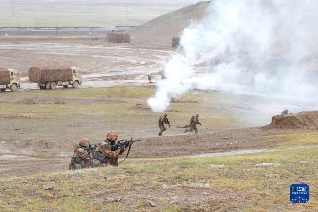 联勤保障部队汽车运输某团一营一连参加高原驻训时,在行车途中组织官兵进行防卫演练(2020年6月16日摄)。