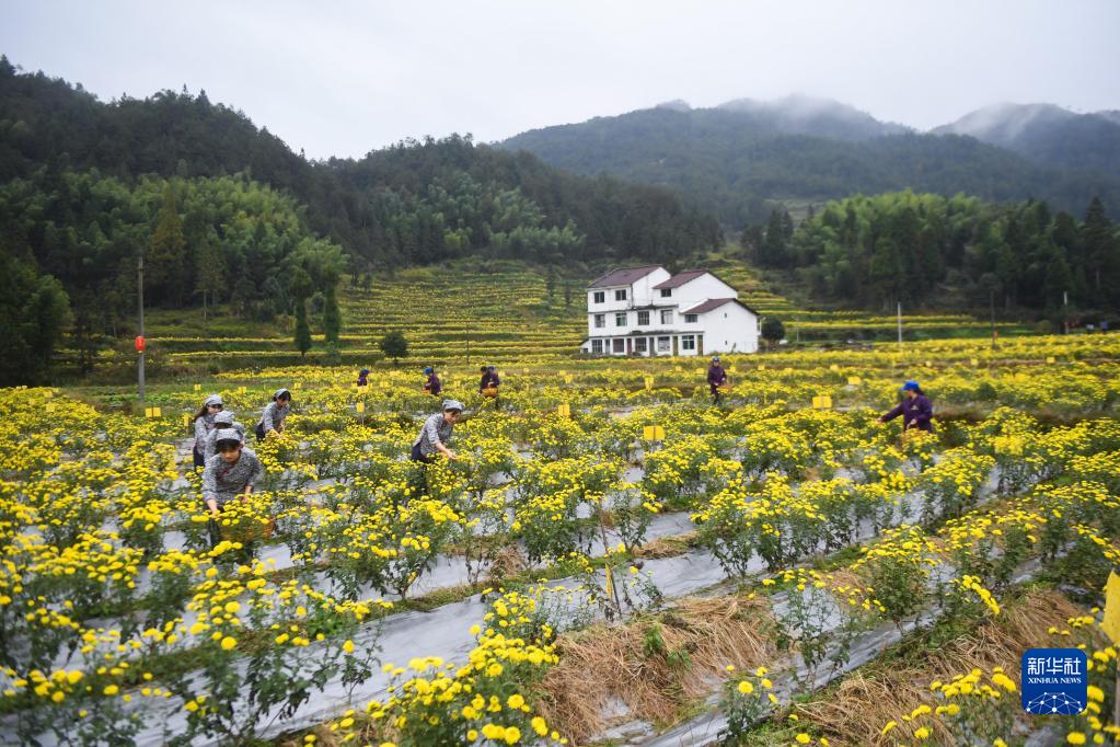 11月初,浙江省青田县阜山乡的千亩皇菊基地进入收获期,吸引游人慕名前来。近年来,浙江省青田县阜山乡依托盆地和梯田种植了1200亩皇菊,年产值3000余万元,吸纳了当地100余名村民就业。村民不仅能得到土地租金分红,还能直接在家门口就业,每年仅村民劳务等费用发放就超过200多万元。当地皇菊产业已经成了青田农旅融合发展、产业兴旺发展的一张金名片。