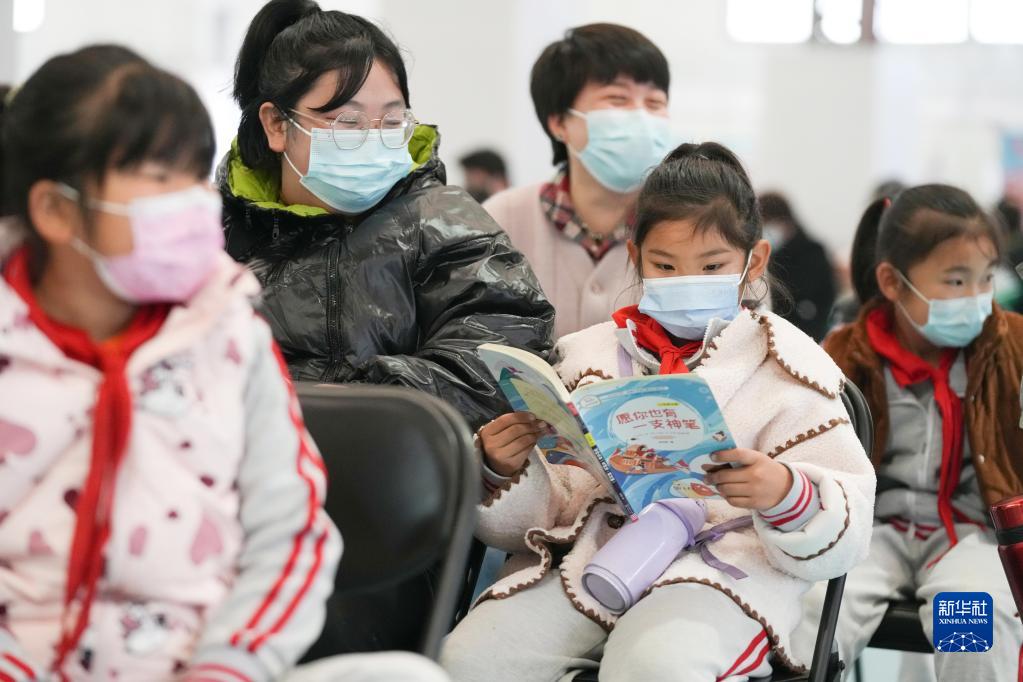 11月4日,在北京市大兴区庞各庄镇一处新冠疫苗接种点,接种完新冠疫苗的庞各庄镇第一中心小学学生和家长一起在留观处等候。