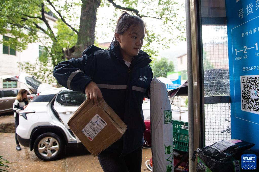 “90后”快递员胡夏是湖南省衡阳市耒阳市黄市镇新生快递乡村服务站的站长,主要负责周边4个行政村的快递寄取,穿梭在田间地头派送快递是她的日常工作。“寄件回家的多是在外务工的年轻人,一个快递就是一份牵挂,”胡夏说。