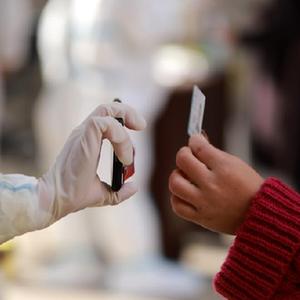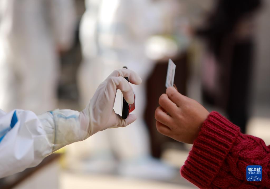 11月4日,医务人员在河北省深泽县紫瑞鑫庭小区为居民进行信息登记。