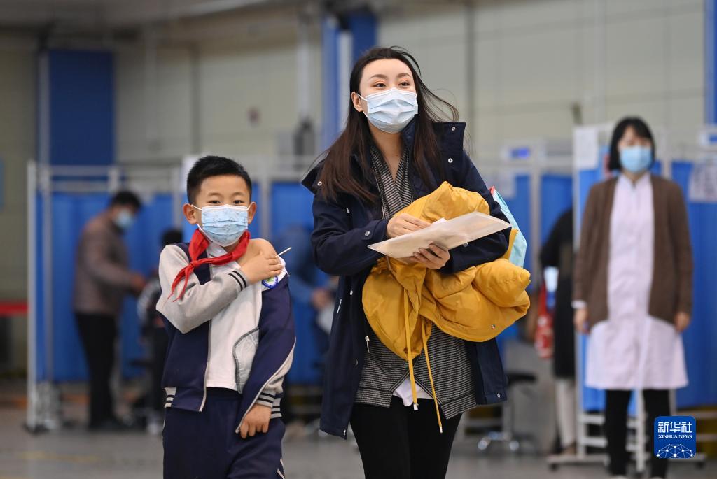 当日,天津市河西区德贤小学组织学生在监护人的陪同下,到北师大天津附中体育馆新冠疫苗临时接种点接种疫苗。近日,天津市启动3到11岁人群新冠疫苗接种工作。