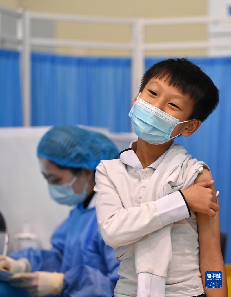 当日,天津市河西区德贤小学组织学生在监护人的陪同下,到北师大天津附中体育馆新冠疫苗临时接种点接种疫苗。近日,天津市启动3到11岁人群新冠疫苗接种工作。