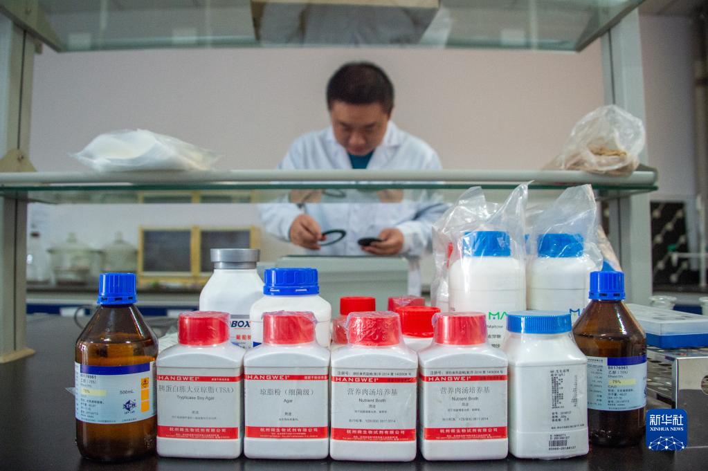 11月2日,中华鲟研究所科研人员在实验室工作。