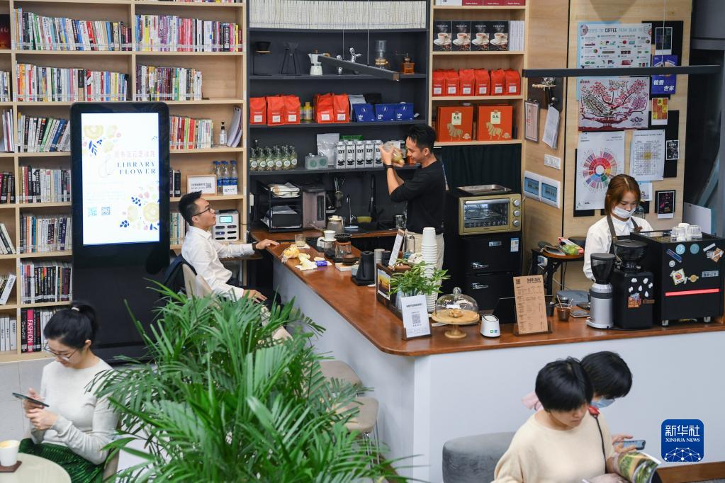 唐震声的咖啡吧台开在深圳文化创意园图书馆一角(10月27日摄)。