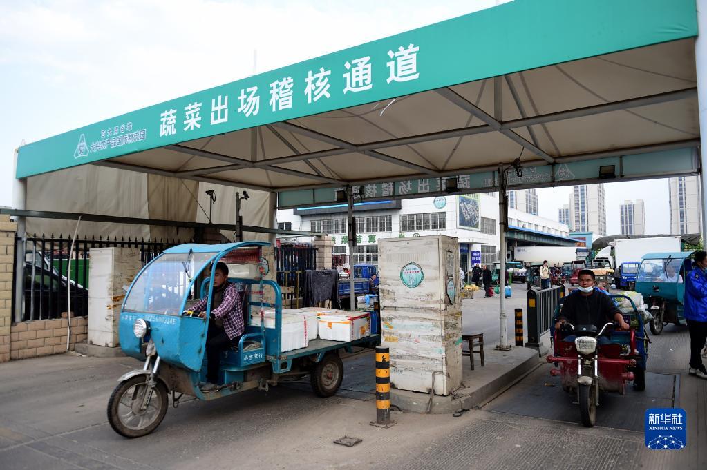 11月4日,进货后的菜市场摊主离开安徽省合肥市百大周谷堆蔬菜交易中心。