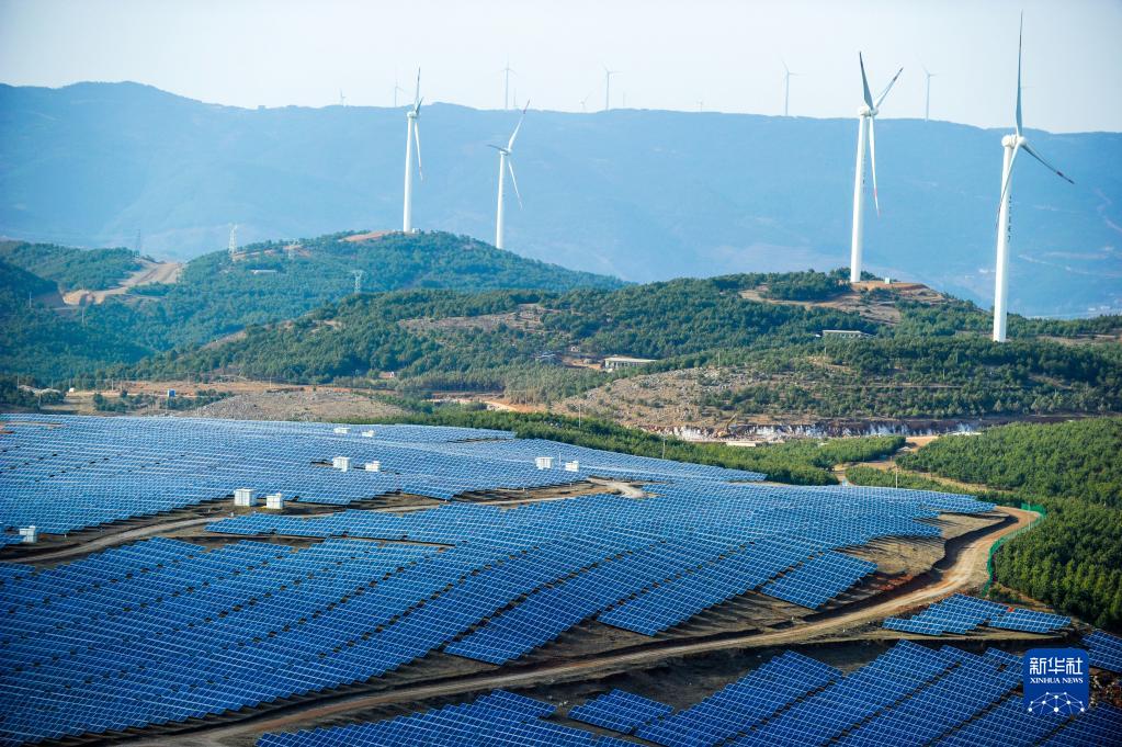 这是贵州省威宁县平箐光伏电站和大海子风电场(2018年3月13日摄)。