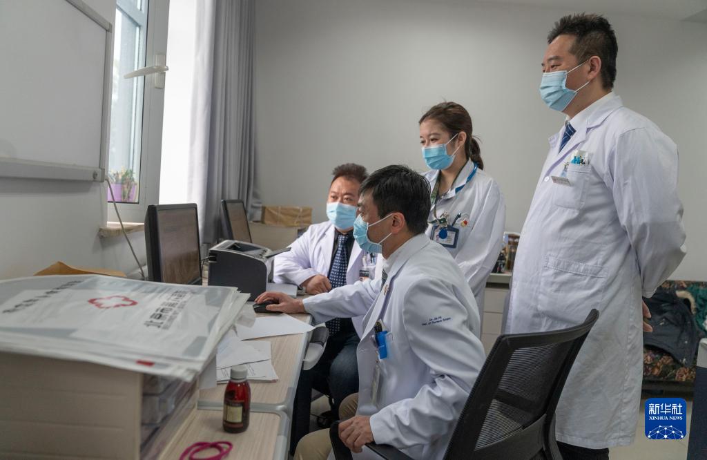 11月5日,在北京市第六医院,北京协和医院与北京市第六医院的医护人员查阅患者化验结果。