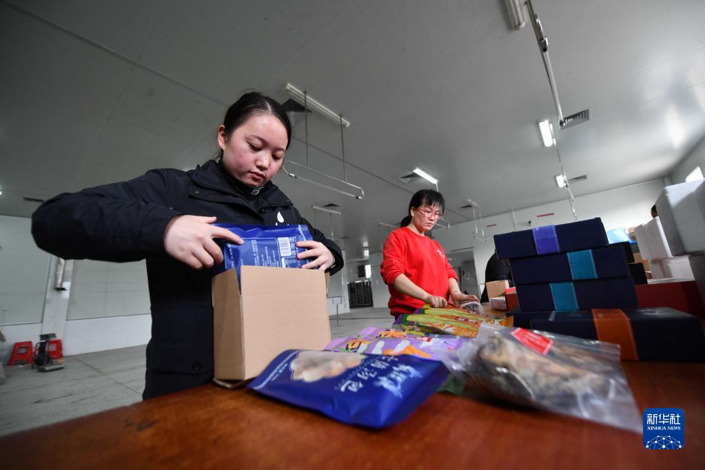 11月5日,广西融水苗族自治县一家电商企业的员工在打包农产品。