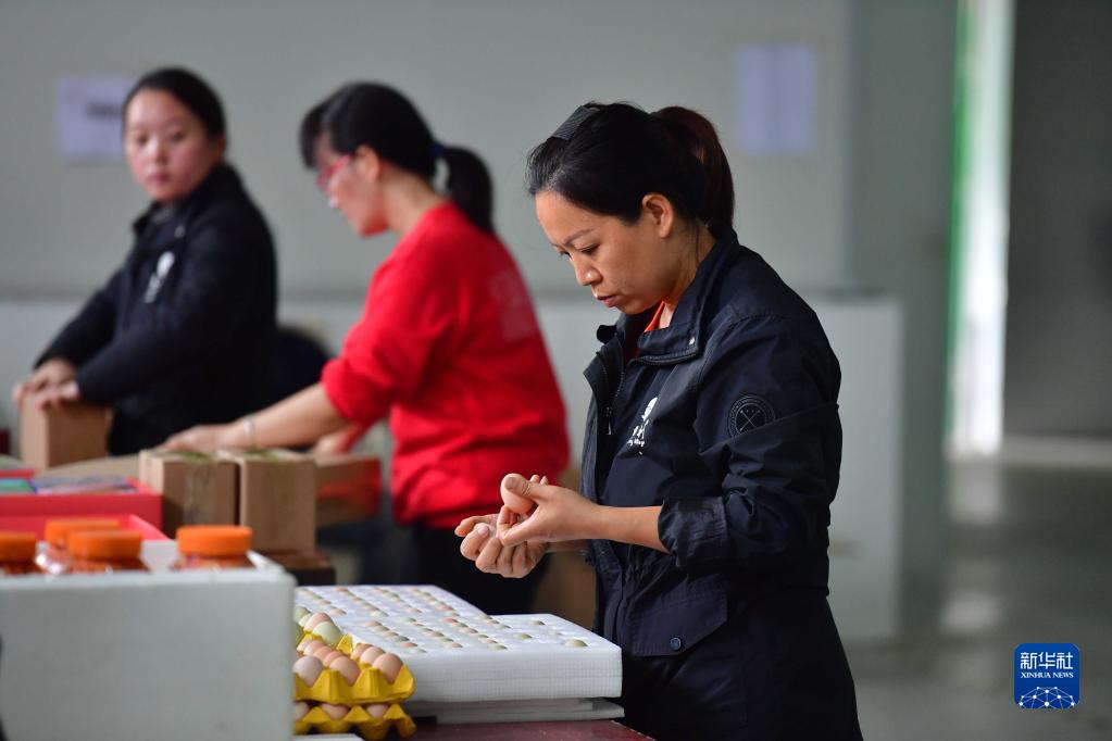 11月5日,广西融水苗族自治县一家电商企业的员工在打包农产品。