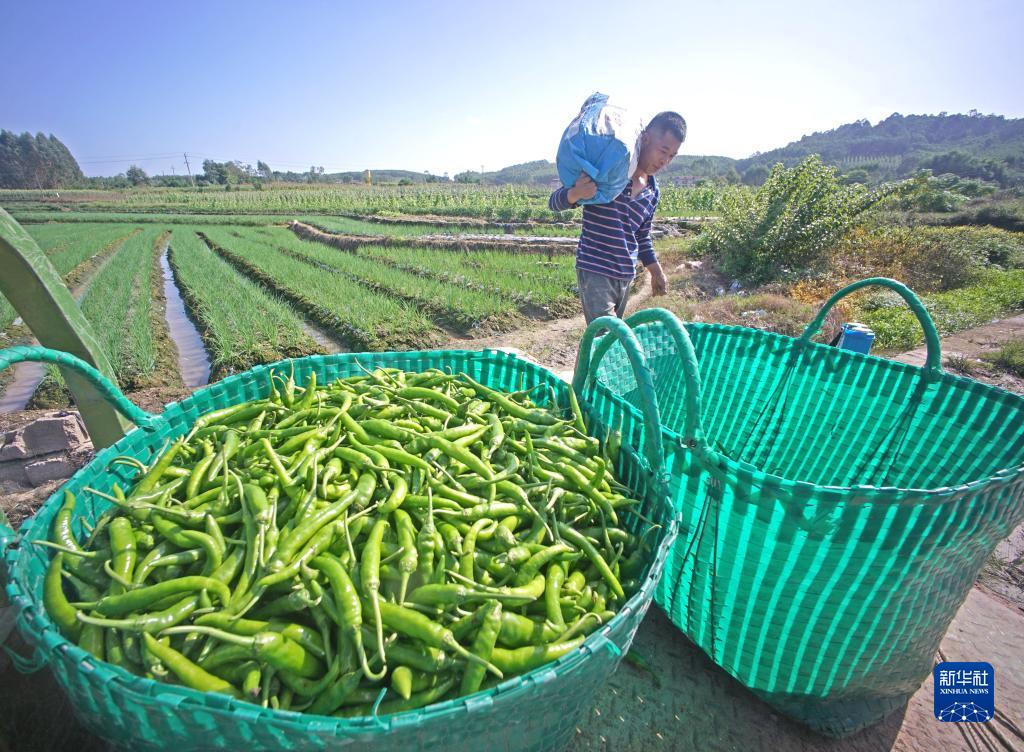 11月5日,村民在广西南宁市江南区江西镇搬运刚采摘的蔬菜。