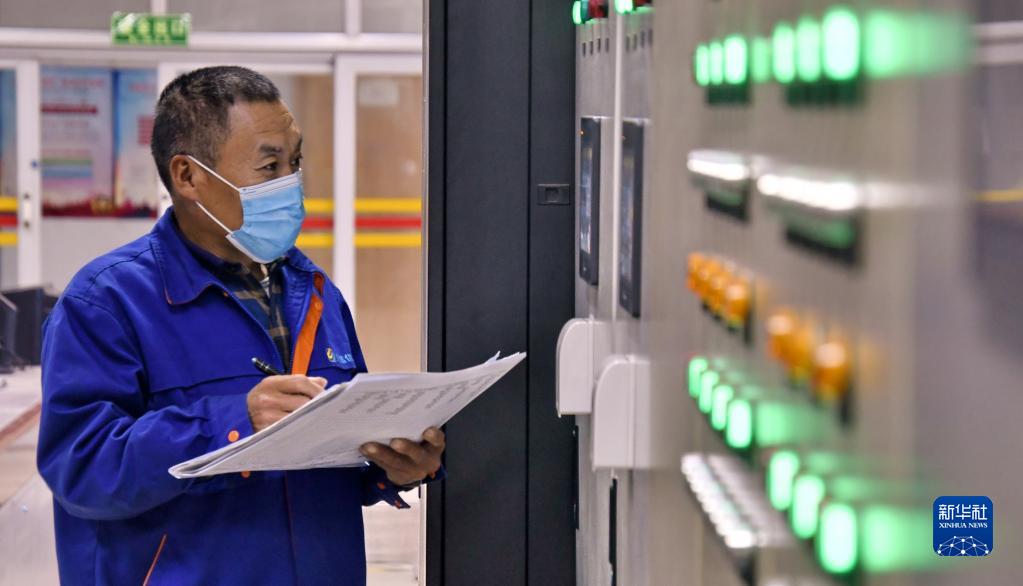 11月6日,北京北燃供热有限公司丰台分公司的技术人员在观测燃气供热设备运行情况。