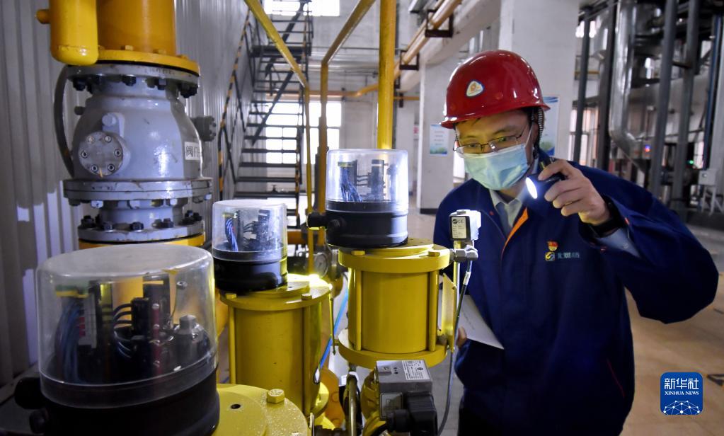 11月6日,北京北燃供热有限公司丰台分公司的技术人员在仔细检查燃气供热设备。