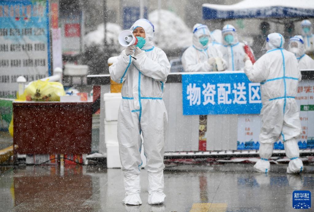 当日,宁夏银川市迎来降雪天气。当地战“疫”一线的工作人员在做好个人防护的前提下,坚守一线抗击疫情、传递温暖,为打赢疫情防控阻击战贡献力量。
