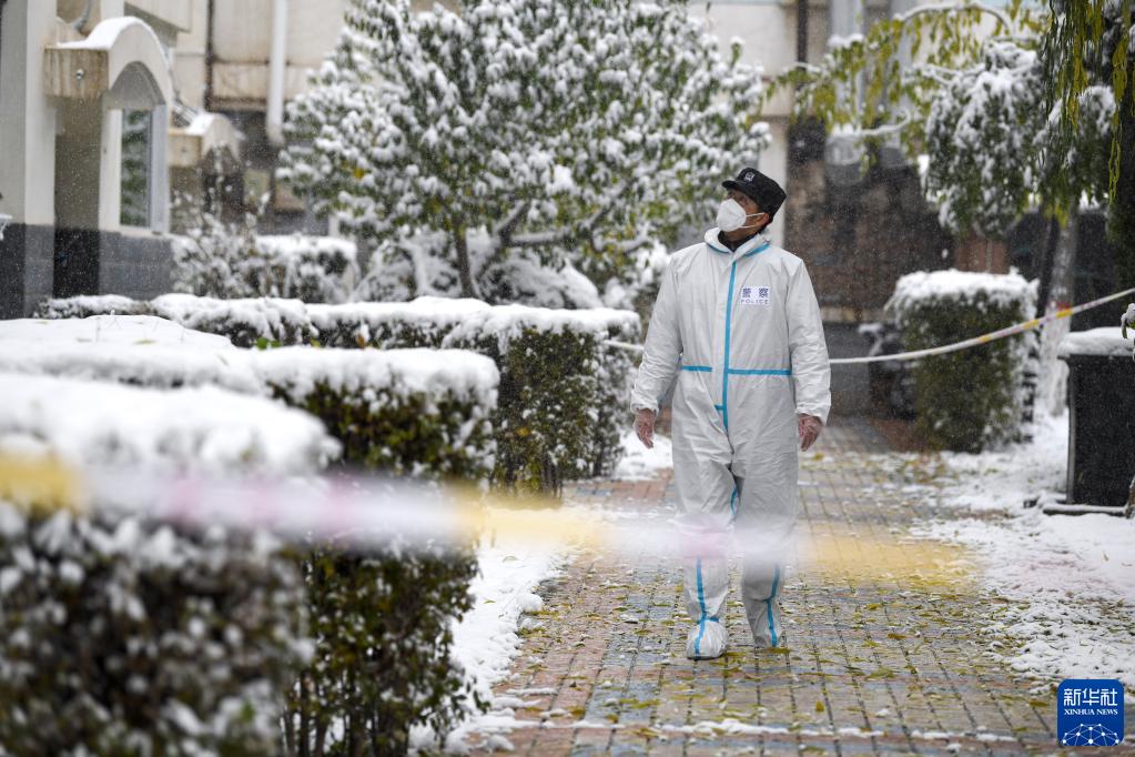 当日,宁夏银川市迎来降雪天气。当地战“疫”一线的工作人员在做好个人防护的前提下,坚守一线抗击疫情、传递温暖,为打赢疫情防控阻击战贡献力量。