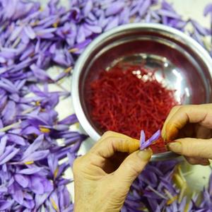 11月6日,贵州省岑巩县羊桥土家族乡祝坝村,村民在采摘西红花。新华社发(唐鹏摄)
