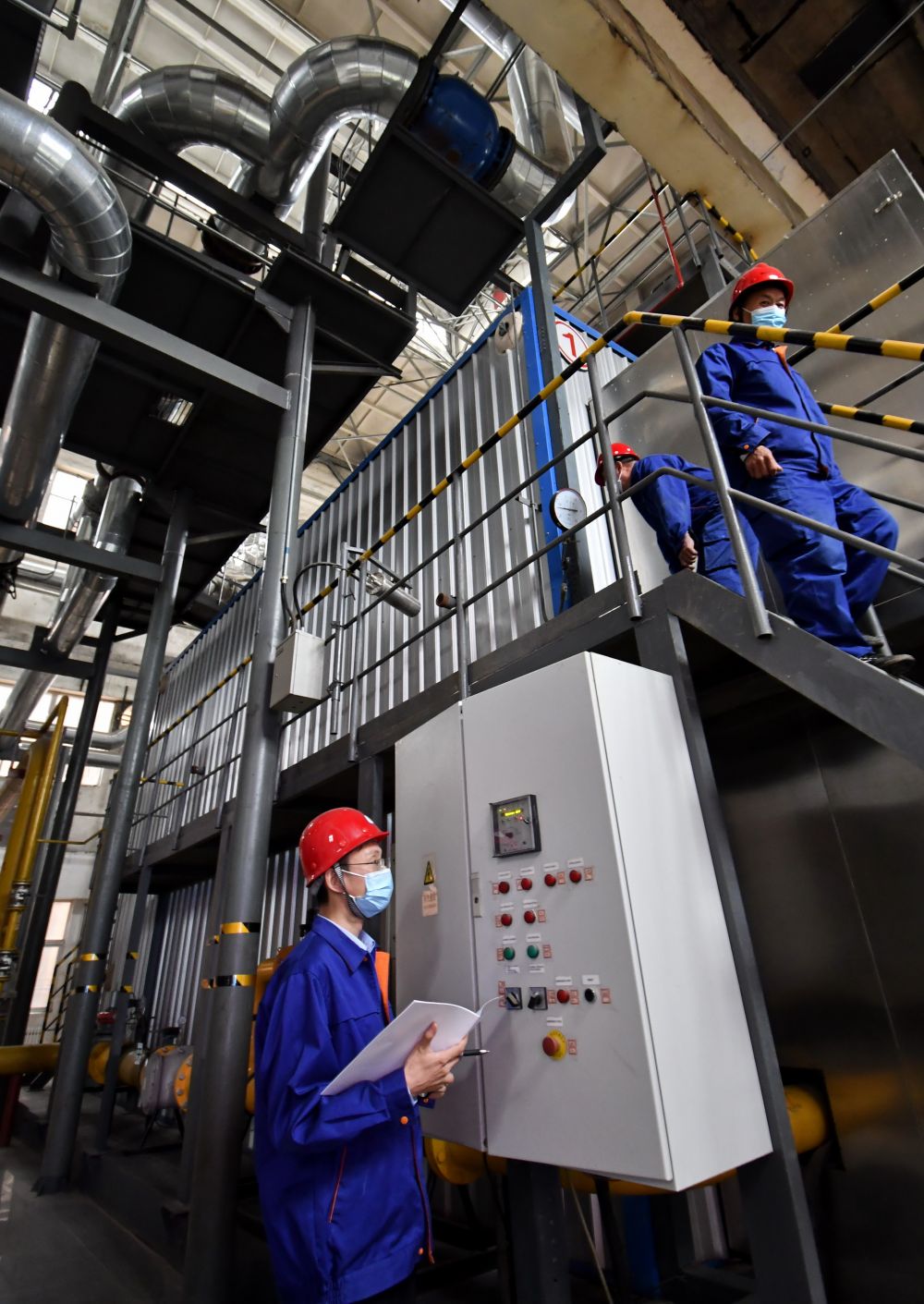 11月6日,北京北燃供热有限公司丰台分公司的技术人员在巡查燃气供热设备。