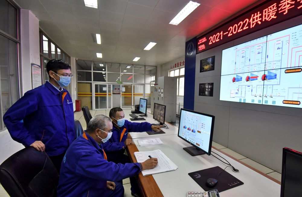 11月6日,北京北燃供热有限公司丰台分公司的技术人员在控制燃气供热设备运行。