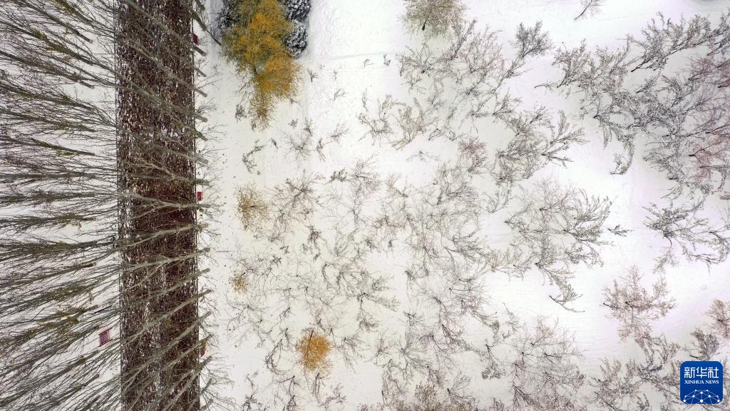 这是11月6日在银川市凤凰公园拍摄的雪景(无人机照片)。
