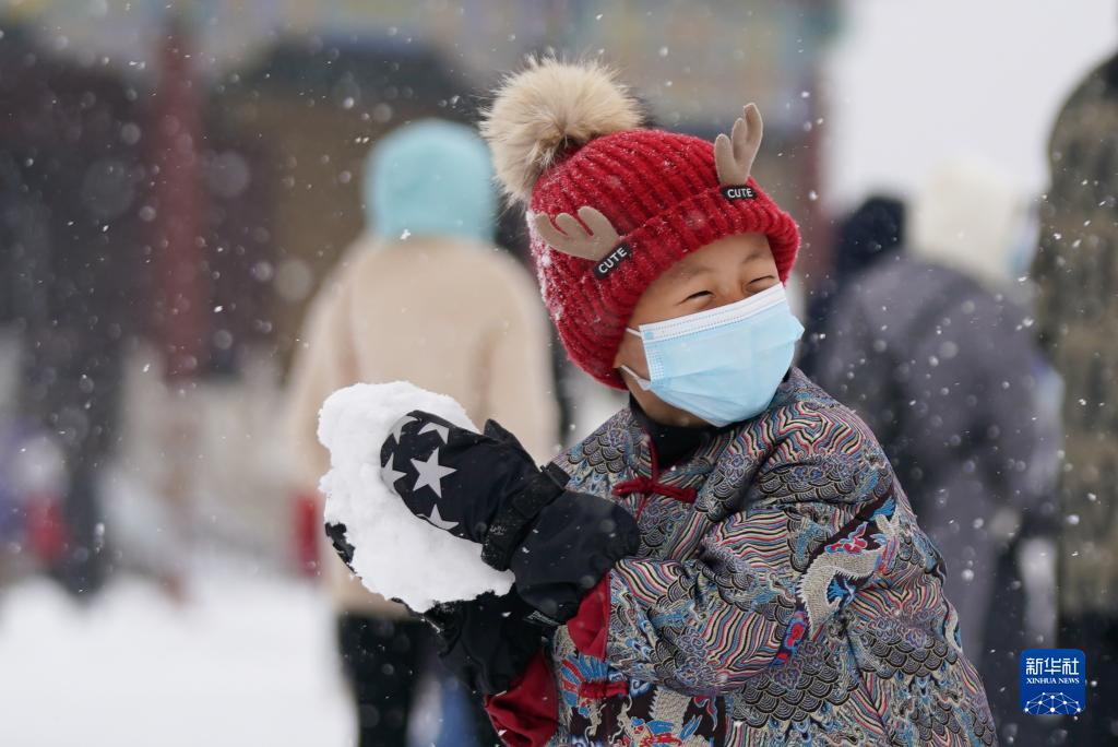 11月7日,小朋友在天坛公园玩雪。