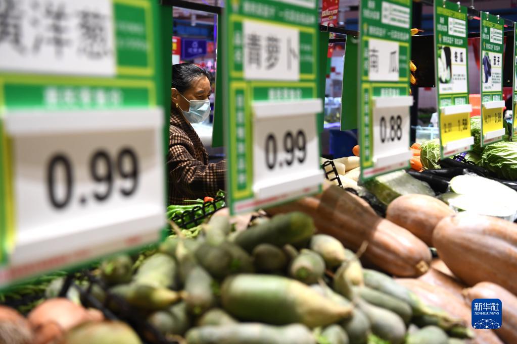 11月7日,市民在合肥市经开区芙蓉社区一家超市选购“惠民菜”。