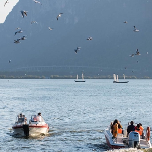 11月7日,一名女子在昆明市滇池海埂观景大道上投喂红嘴鸥。