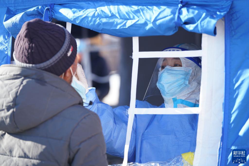 寒潮来袭,黑龙江省黑河市迎来降温天气。参与疫情防控工作的核酸采集人员与病毒赛跑,与寒冷抗争,坚守在黑河市疫情防控一线。