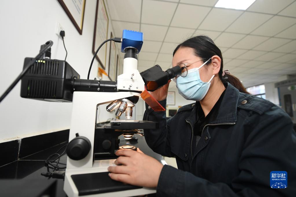 11月8日,中建路桥集团中心试验室工作人员在原材料试验室对沥青混合料木质纤维进行检测。