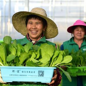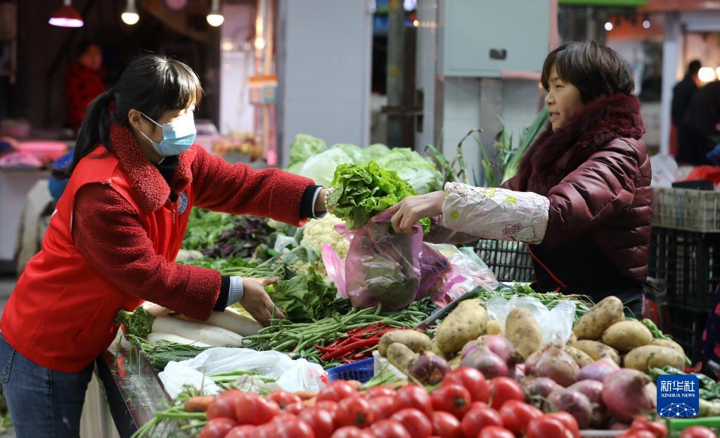 11月8日,安徽合肥市蜀山区琥珀街道飞虹社区工作人员为空巢老人购买“暖心菜”。