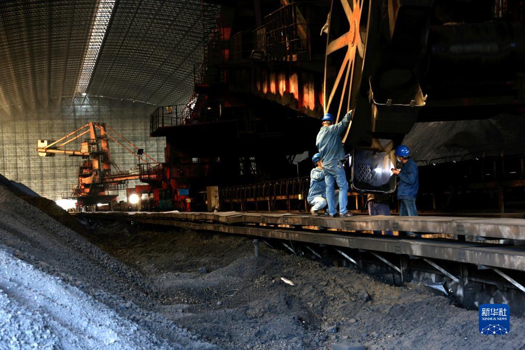 11月8日,工作人员在皖能合肥发电有限公司电煤仓库检查维护输煤设备。